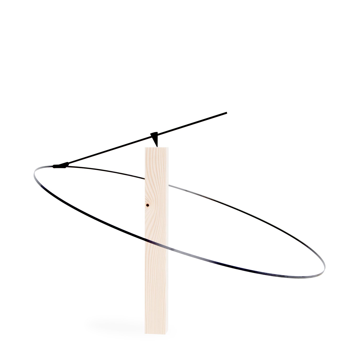 A lightweight hoop, suspended and gently swaying in the breeze.