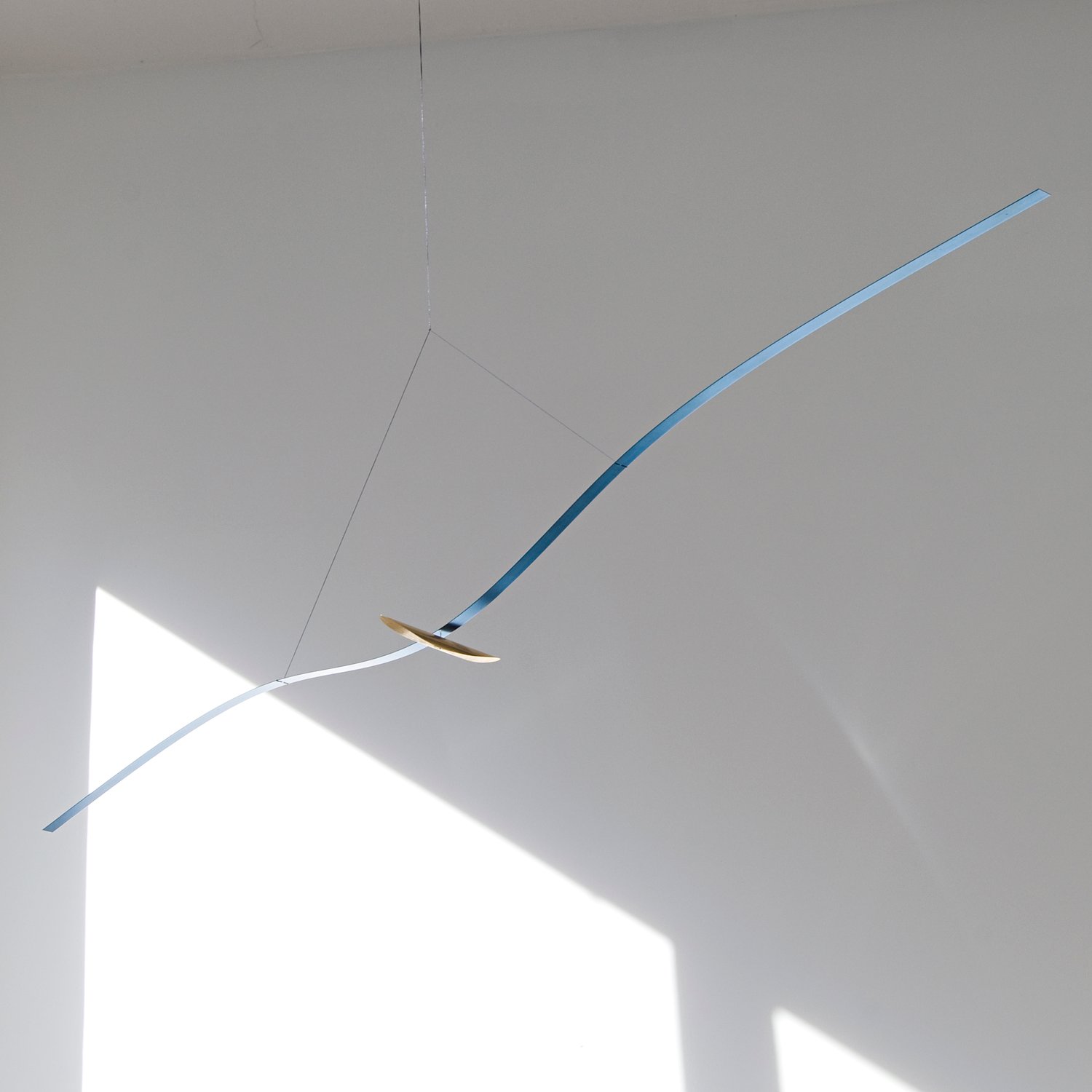 a single blue line undulating under the bird’s weight.